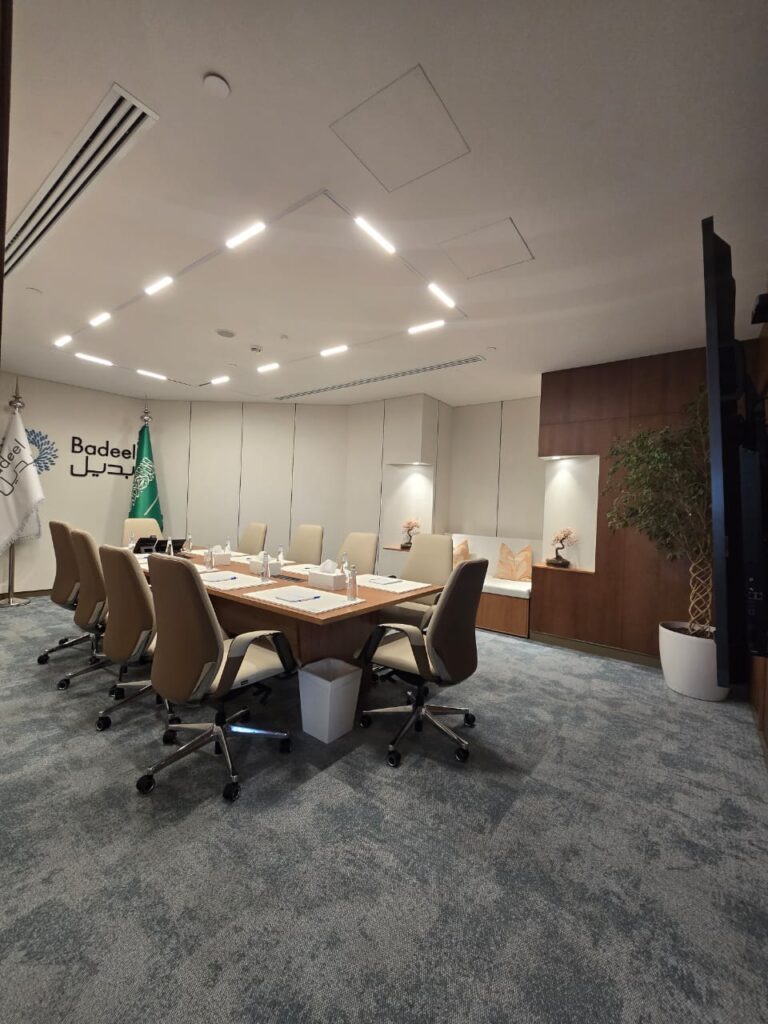 Located on the 11th floor of the Kingdom Tower in Riyadh, this project serves as the headquarters of Badeel, a company specializing in clean and renewable energy. The interior design reflects the company’s focus on sustainability through a fresh and minimalistic style, while also conveying the strength and formality associated with the Public Investment Fund.